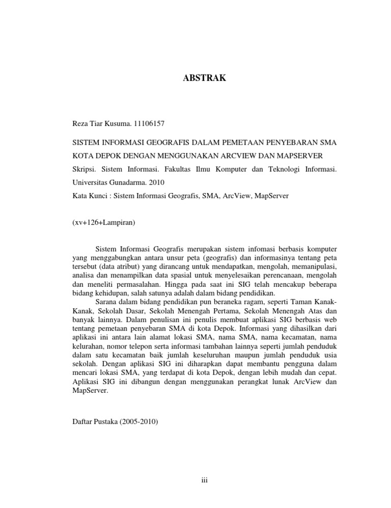 Abstrak Tugas Akhir Sistem Informasi Geografis Lokasi Contoh Dan Tit